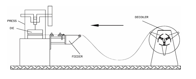 This machine opens the coil of sheet to supply it to feeder and press. The sheet strip is placed on the machine. The machine rotates on the horizontal axis to supply sheet for press.